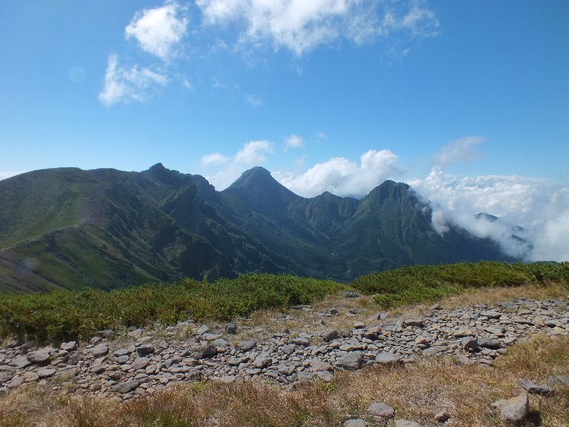 急坂のガレ場を登り、硫黄岳に登頂。