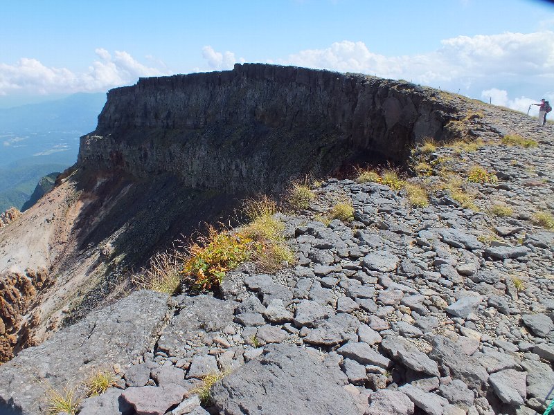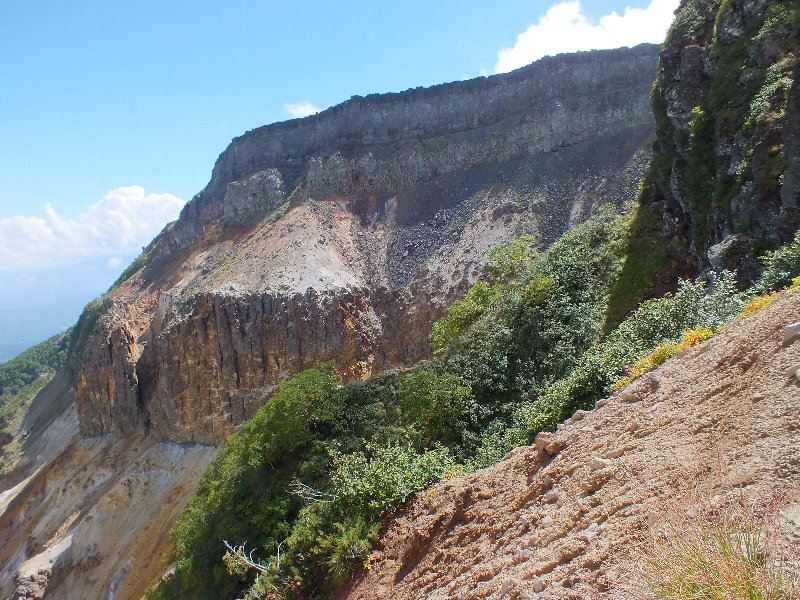 爆裂火口の断崖を見上げる |