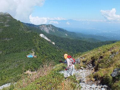 あきらめて、途中の箕冠山からオーレン小屋へと下る。