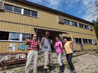 オーレン小屋へもどると、硫黄岳で会った、御夫婦とまた会い、歓喜の写真を撮る。