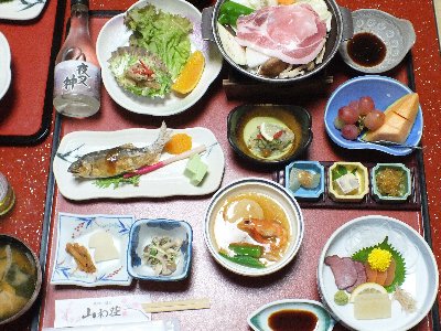 のんびりと温泉に入り、美味しい夕食を食べ、山歩きの疲れを癒す