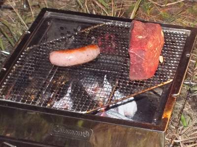![]() ビッグウィンナー と 肉の塊を炭火焼き |
