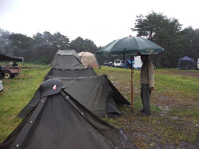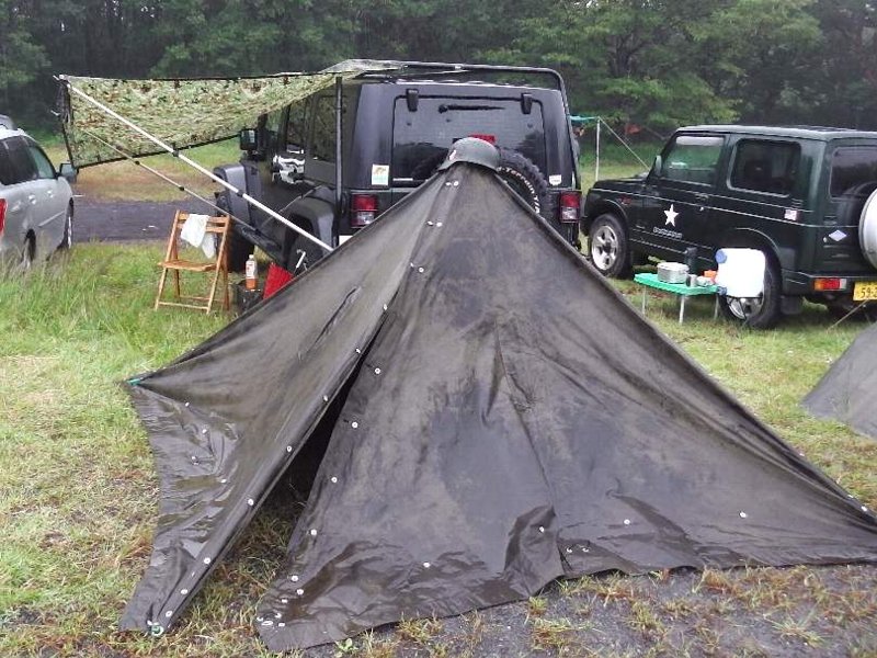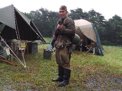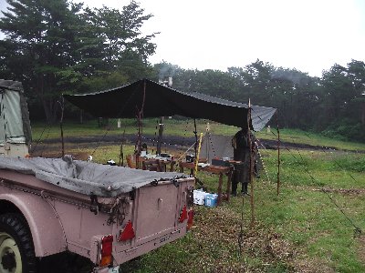 9/22 14時ごろ会場入りし、天気も良いので ドイツ軍ツェルトで、テントを作る。