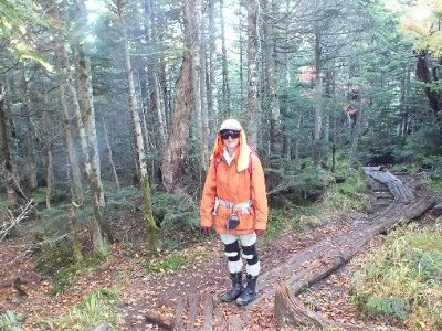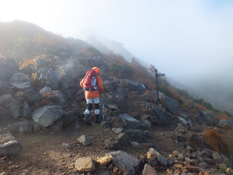 山頂に近づくと、雲が上がってきていて見通しがきかない。 |