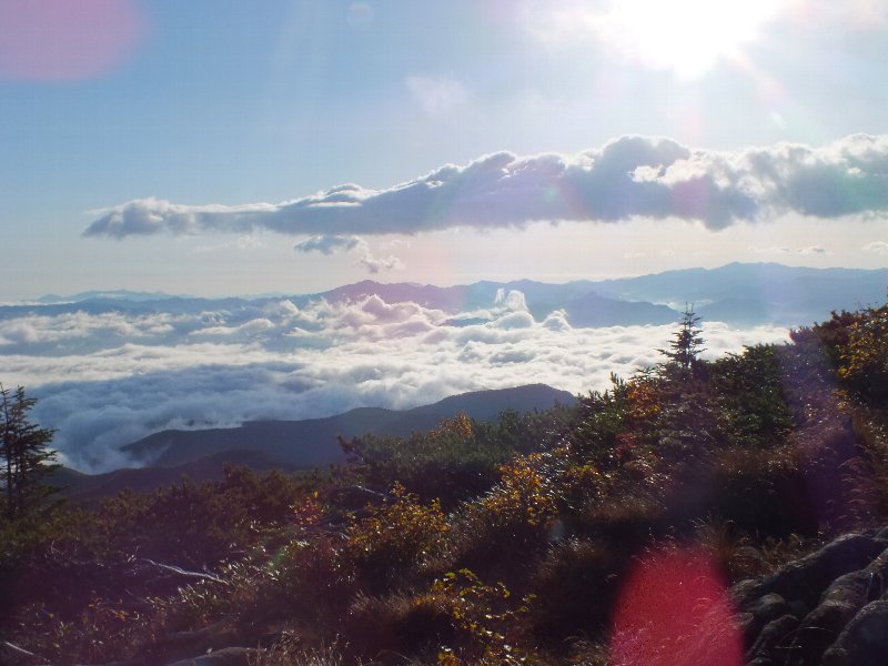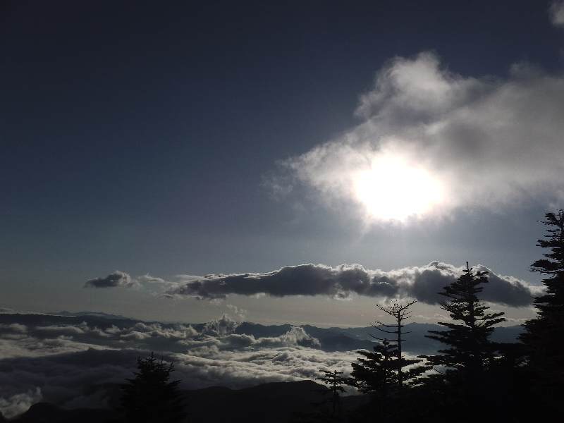 | 黒ゆりヒュッテ〜東天狗岳〜西天狗岳〜西尾根〜唐沢鉱泉 2012/10/05 東天狗岳への尾根からの朝日と雲海 |