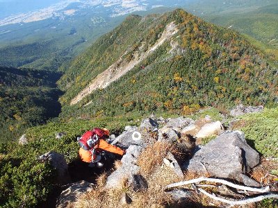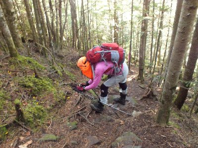 岩場で急坂という西尾根からの下山に挑戦。