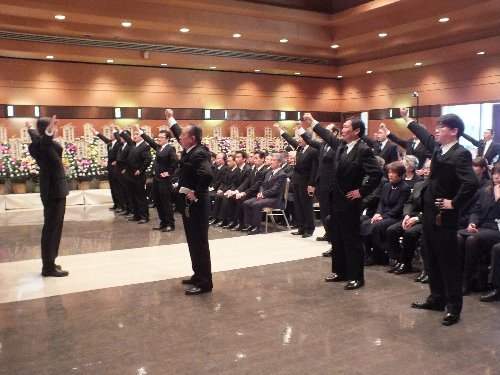 告別式に、応援団OB会として参列、校歌奉呈