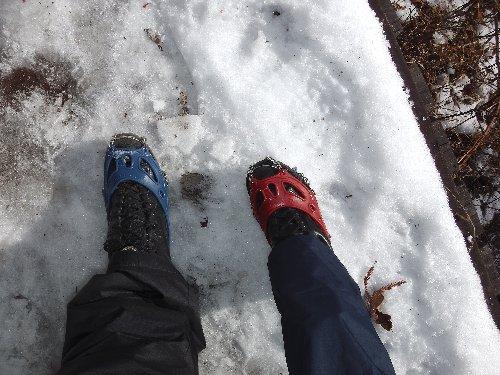 チェーンスパイクを装着し歩いてみる。 |