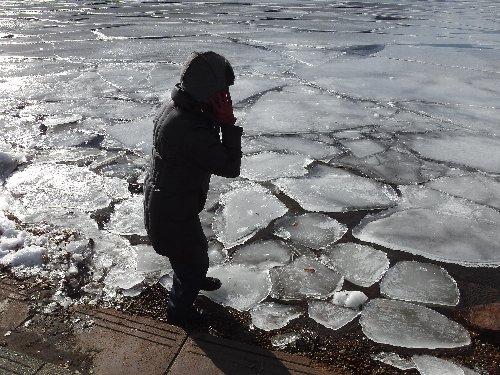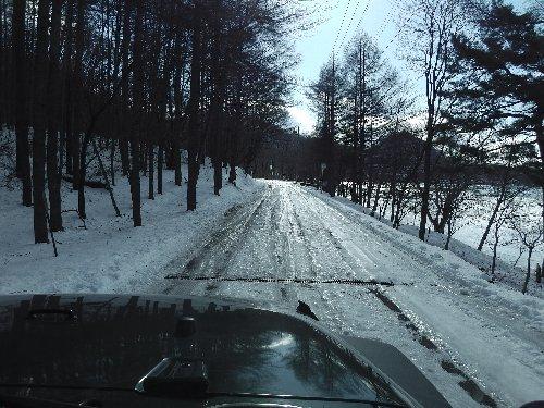 湖畔の道は、完全に凍結 |