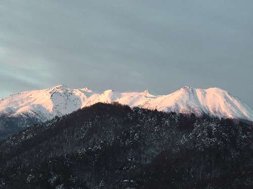 朝陽に染まる御獄山 |