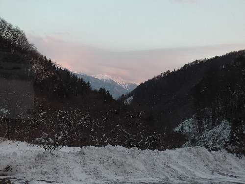 二本木の湯から 夕陽の中央アルプス |