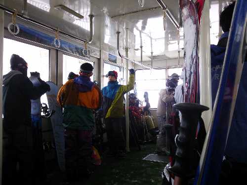 強風のため、ロープウェイが停止中 リフトのみで滑る。