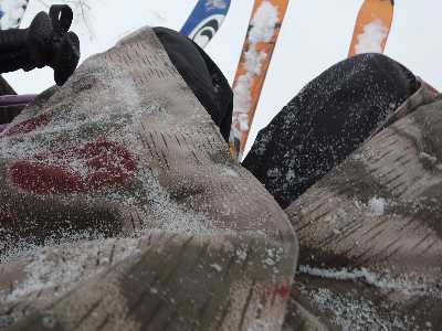 ![]() リフトに乗っている間に、雪が積もる |