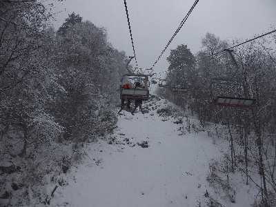![]() 雪の中リフトに乗る |