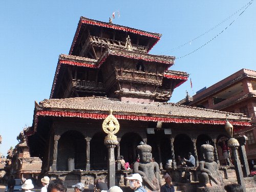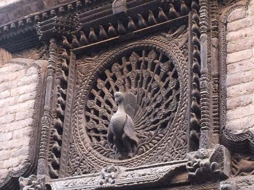 タチュバル広場の 木彫美術館。この建物の左側の露地を入るとネワール彫刻の最高傑作といわれる 孔雀の窓に会える。