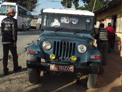 Jeep CJ を発見 ジャッキをかけて修理中? |