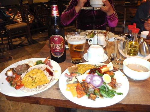 夕食は バイキング。グルカビールとともに 美味しい!!