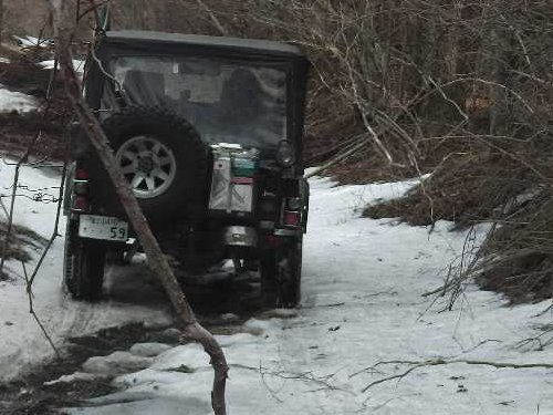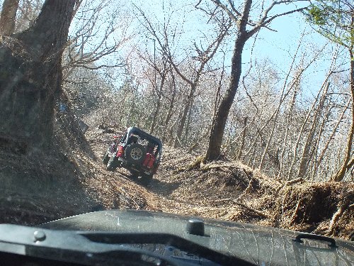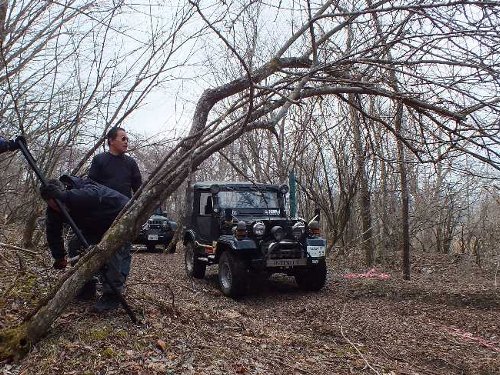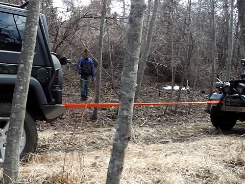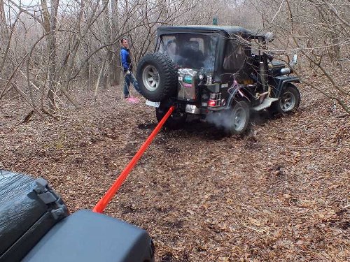 ![]() 私のJKアンリミが後ろからソフトカーロープで、J59を引っ張り支える |