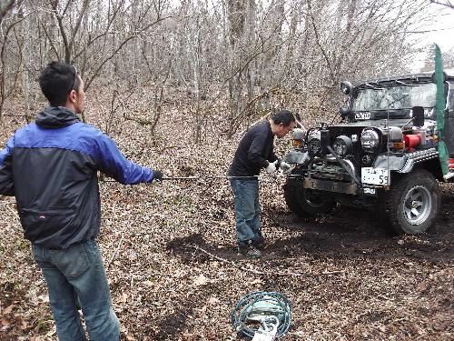 ![]() ウィンチで引くが、車重が軽く、引っ張られてしまう |
