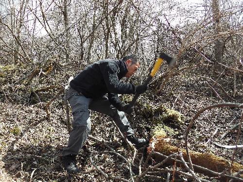 ![]() 斧で切る |