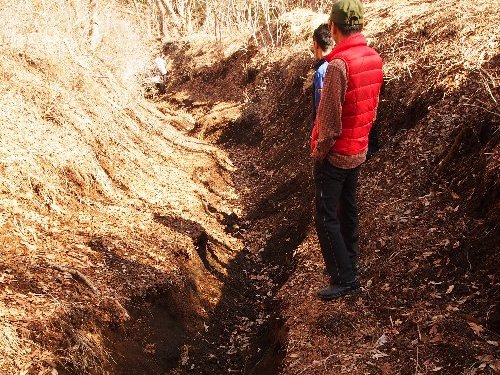 と思っていたら、前方に見えるは、深い溝・・・。