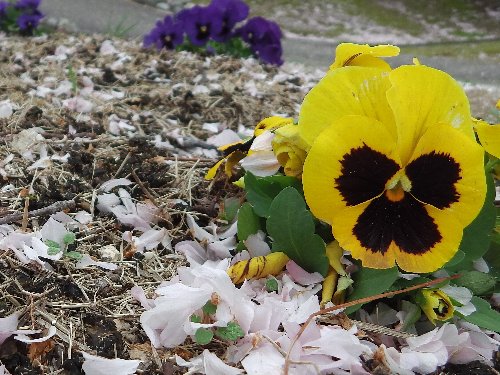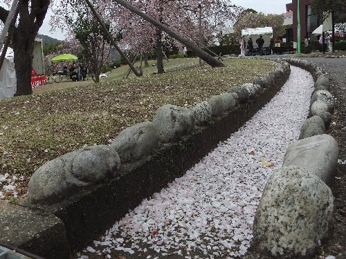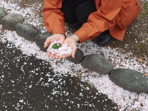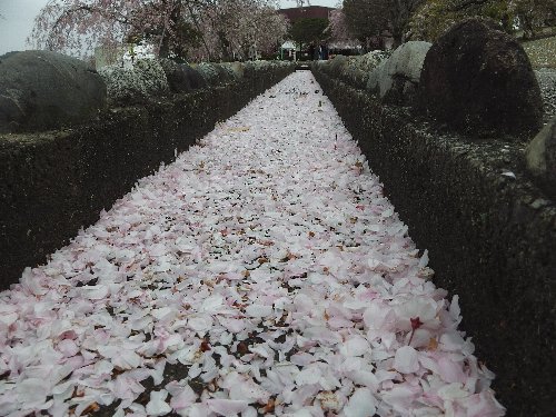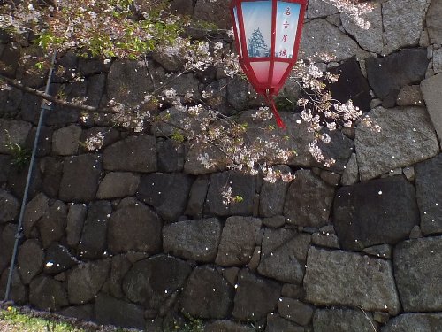 石垣と、風に散る桜 |