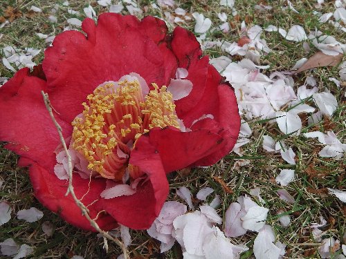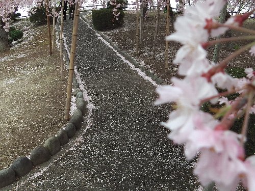 | 嵐の前の、幸田の桜 2013.04.05 桜公園のしだれ桜 満開であるが、この日の午後の嵐で、散る運命。 |