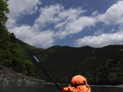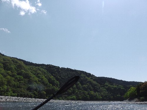 ひさびさに、きれいな大井川を、のんびりと漕いでいく。