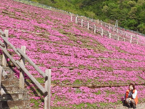 愛車JKアンリミで、艇を回収し、長島ダムの芝桜が5〜6部咲きだとの事で、花見へ