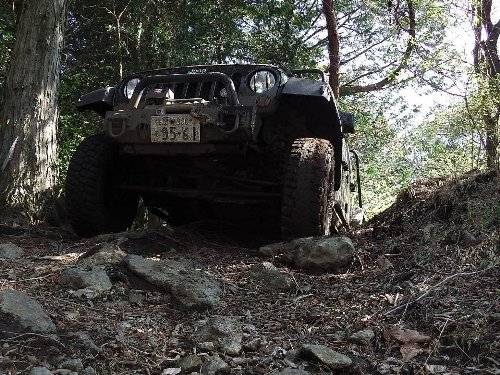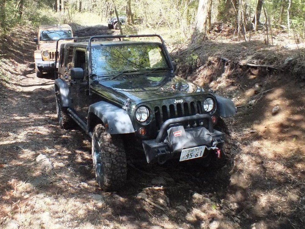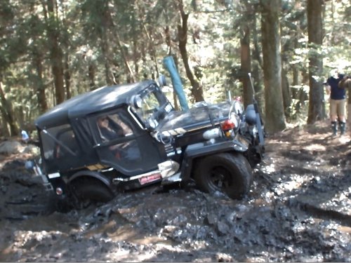 私のアンリミ、 スタックし 三菱Jeep 2台のアンカーで、自車ウィンチ脱出(2台アンカーでないと重いアンリミは動かない)