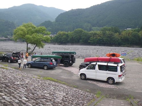 千頭の河原に集まったのは、7台の車、14名とワンちゃん一匹。