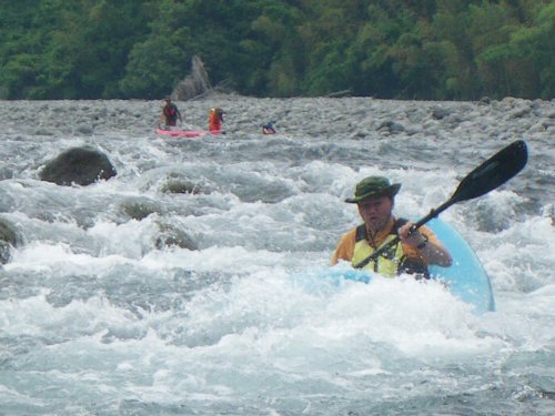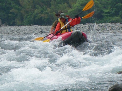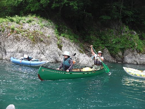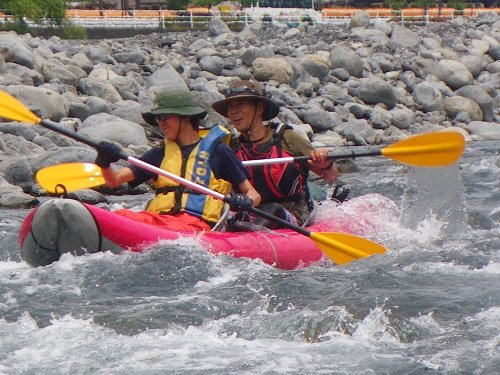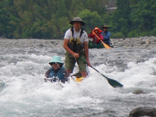 ![]() 立ち漕ぎで、瀬を越える hi-deさん夫妻 |