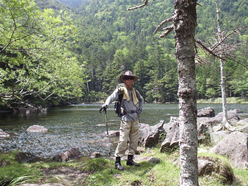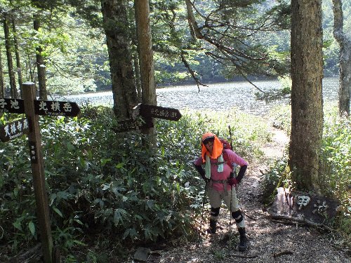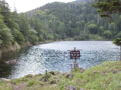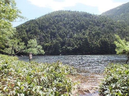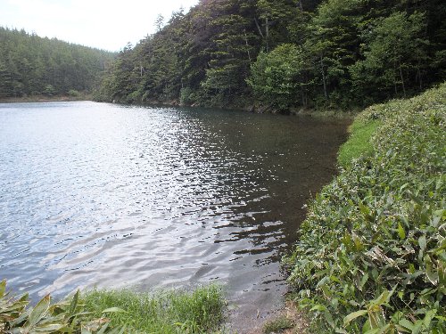 昨年秋に、北横岳から亀甲池へ行ったが、 その時よりも水が多く、湖畔を歩けない。