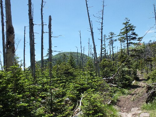 山頂への岩の急坂よりは、斜度が少ないが |