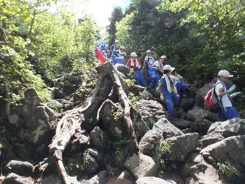 山頂への登りは岩場の急坂が長く続き、辛い。