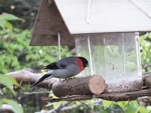 うそ という鳥が餌を食べにくる。 |