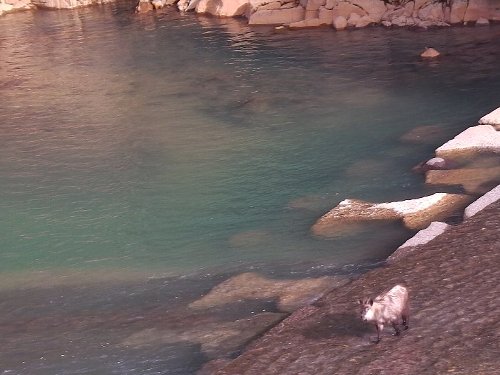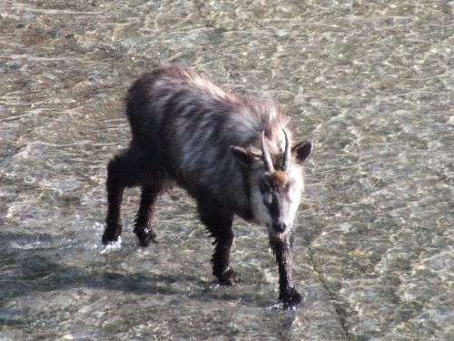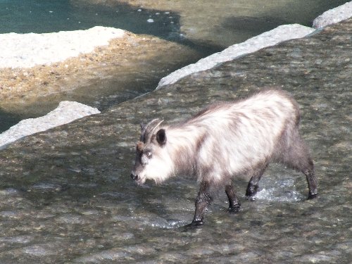 キャンプ地へ帰る道から、河原にカモシカを発見。