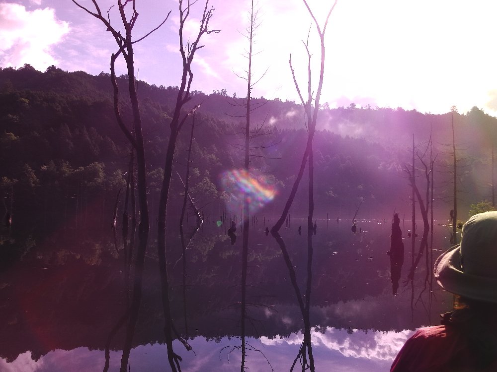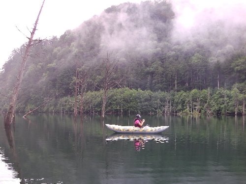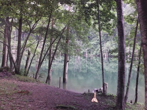 | 早朝の 御嶽山 自然湖 2013.07.14〜15 御岳自然湖でカヌーを楽しまれる方々へのお願い。 |
