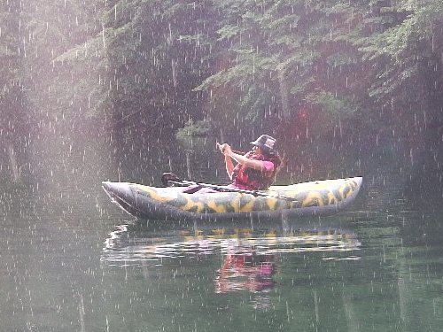 TERU-JKさんに豪雨なので漕艇中止と電話すべきか、