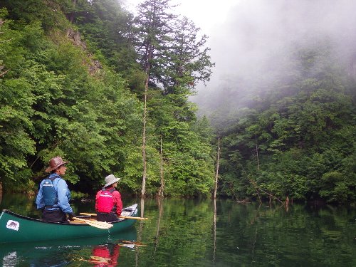 最深部から、最下流部まで湖岸沿いをゆっくりと漕ぎ、