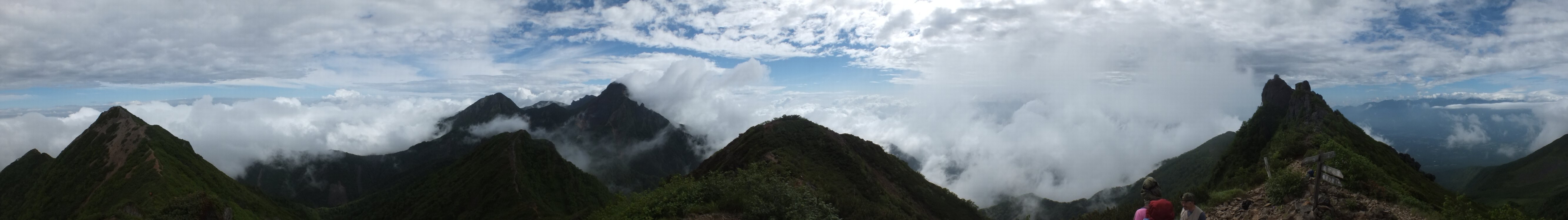 | 権現岳からのパノラマ 西岳 阿弥陀岳 硫黄岳 中岳 横岳 赤岳 権現岳 南アルプス |