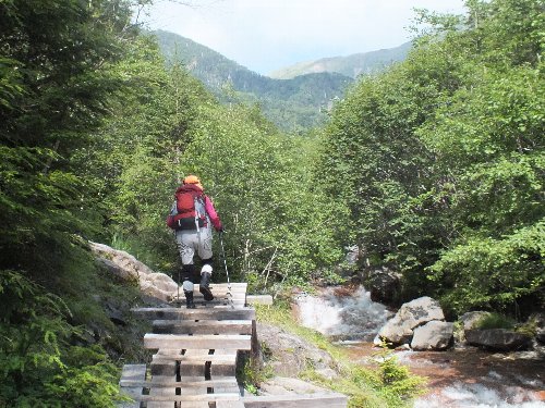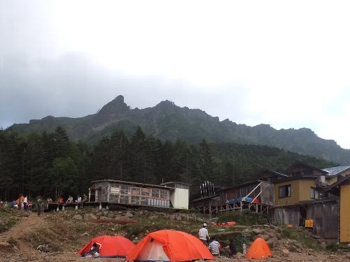 | 八ヶ岳 横岳から赤岳へ 2013.08.07〜09 赤岳鉱泉から横岳を眺む |