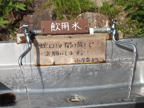 山小屋では信じられない、流しっぱなしの飲料水 |