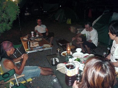 ベースに戻り、焼き鳥などで宴会。