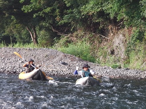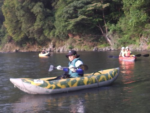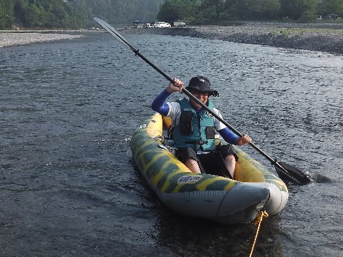 気田川 3日目のこの日は、ジョアキンさんと合流できるかもしれないので、5時起床で早朝漕艇をする。