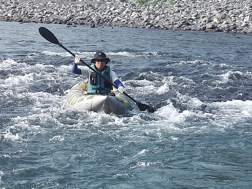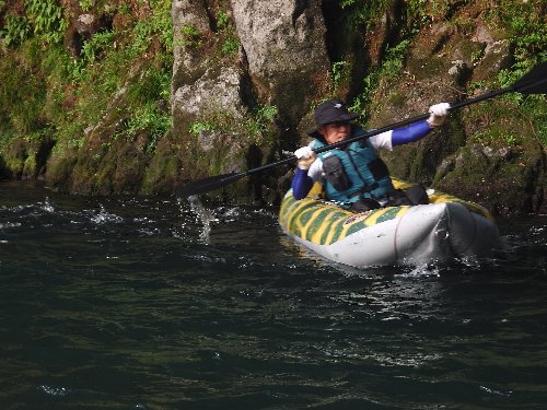 hshi氏は、前日は私といっしょにカナディアンに乗ったのが、この日はダッキー単独漕艇。