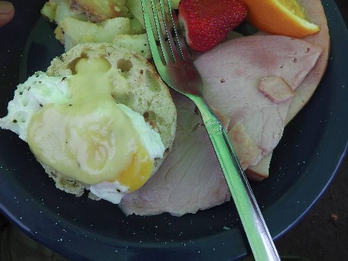 夜半からの 激しい雨の中の朝食。 |