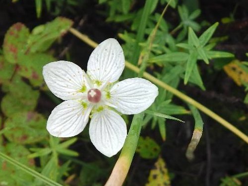 キャンプサイトの裏山に ハイキング。小さな花が迎えてくれる。水ゴケのふかふかのマットの上も歩く。