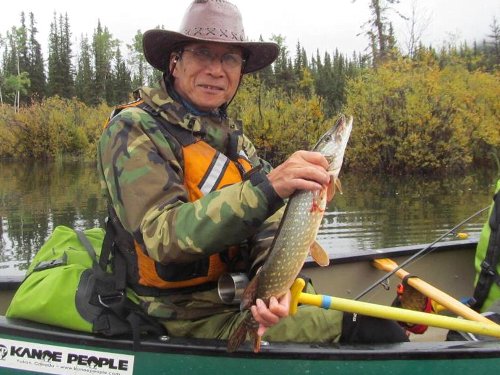 最初のパイクポイントで 驚いたことにハルが最初のパイクを釣り上げた。