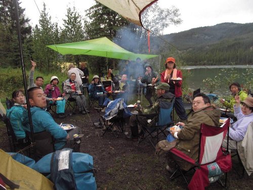 昼食時など、カヌー8艇で、筏を組むのだが、